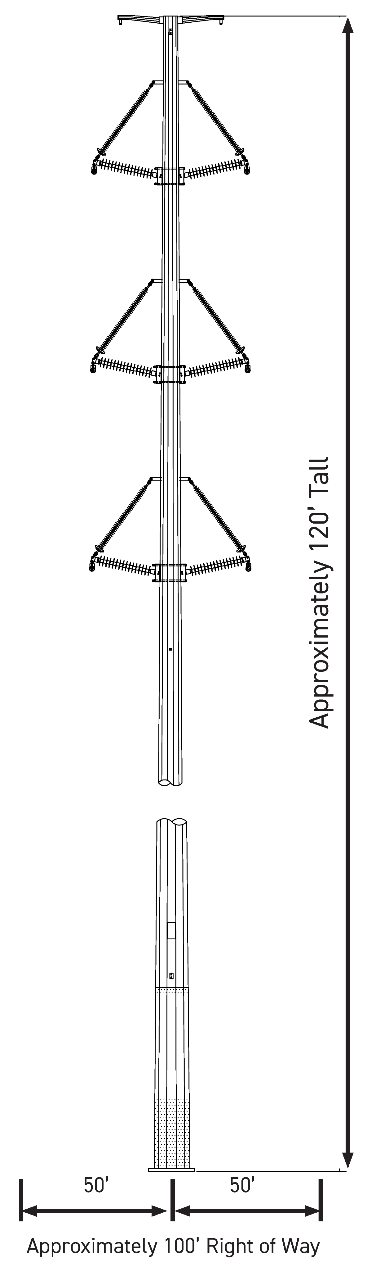 If needed for the dead-end and angled structures, concrete foundations will be installed several weeks before the steel poles are erected to allow the foundations to cure and reach their maximum strength. The steel poles will be delivered and set next to the proposed structure location shortly before structure erection. The structures will be assembled on-site, and a crane will be used to set the sections into place onto the previously installed foundations.